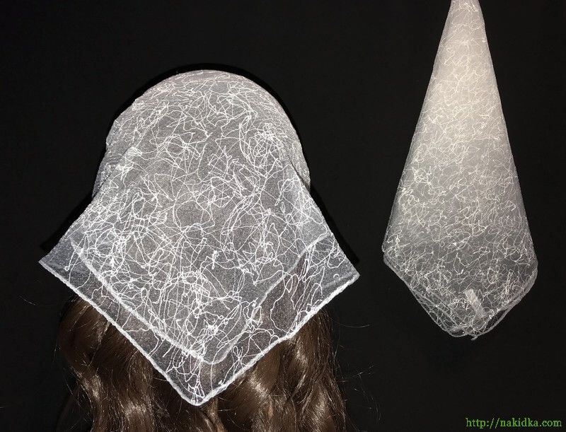 | Утененная нейлоновая косынка с белой серединой и серыми краями с паутинкой |
