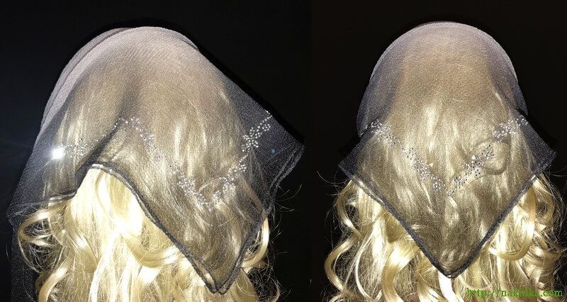 | Белая с черным двутонная косынка с наклеенным блестящим узором на задней части |
