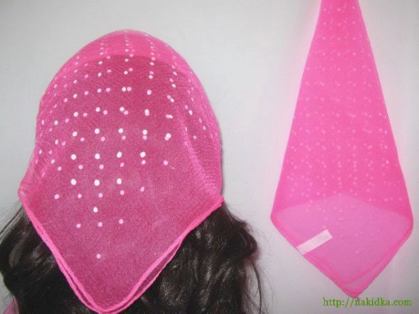 | Светло-малиновая нейлоновая косынка в мелкий белый горошек |