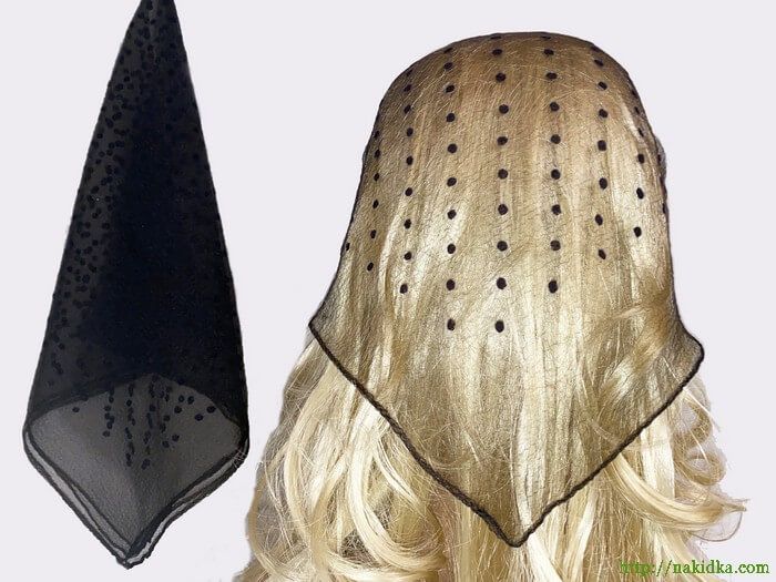 | Темно-коричевая нейлоновая косынка в мелкий коричневый горошек |
