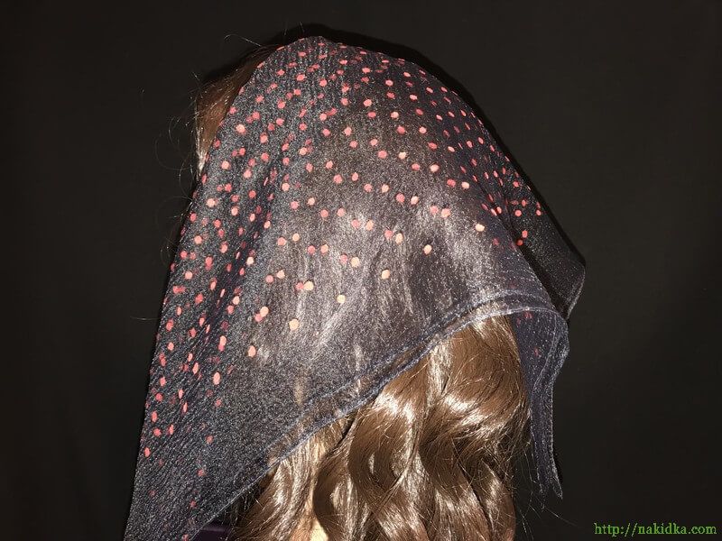 : Черная нейлоновая косынка в мелкий красный горошек