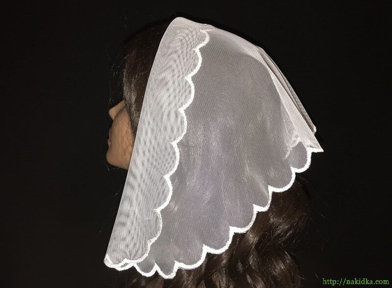 | Белая легкая фатиновая накидка с вышитым волнистым ободком |