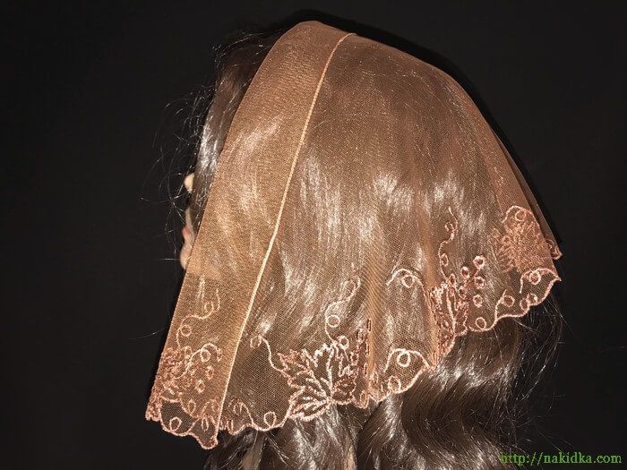 | Светло-коричневая легкая фатиновая накидка с коричневым вышитым узором |