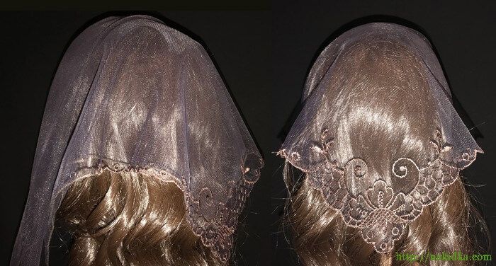 | Темно-коричневая легкая фатиновая косынка с темно-коричневым вышитым узором |