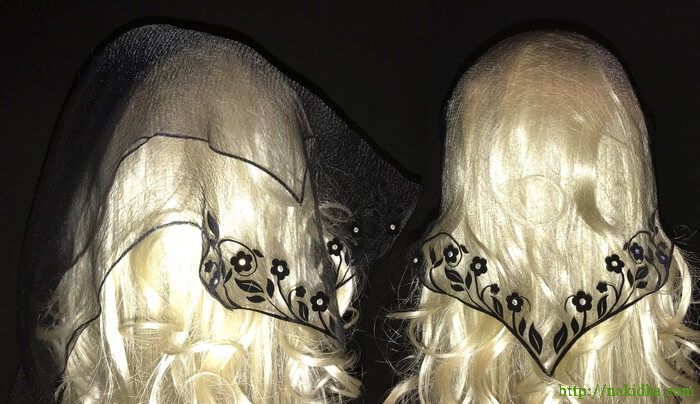 | Черная однотонная нейлоновая косынка с наклеенными черным флоковым узором и блестящими камушками |