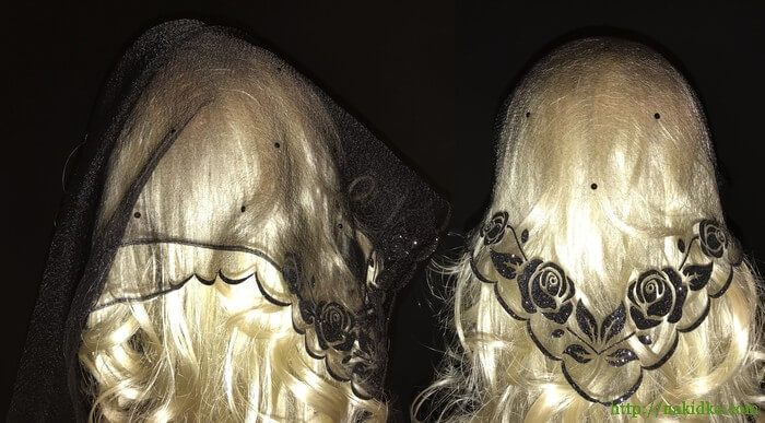 | Черная однотонная нейлоновая косынка с наклеенными черным флоковым узором и черными камушками |