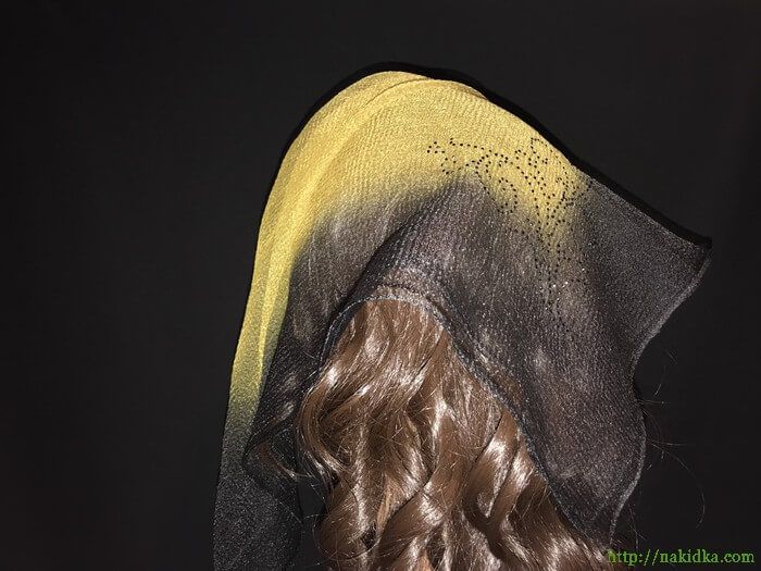 | Темно-желтая с черным нейлоновая косынка с наклееным черным узором |