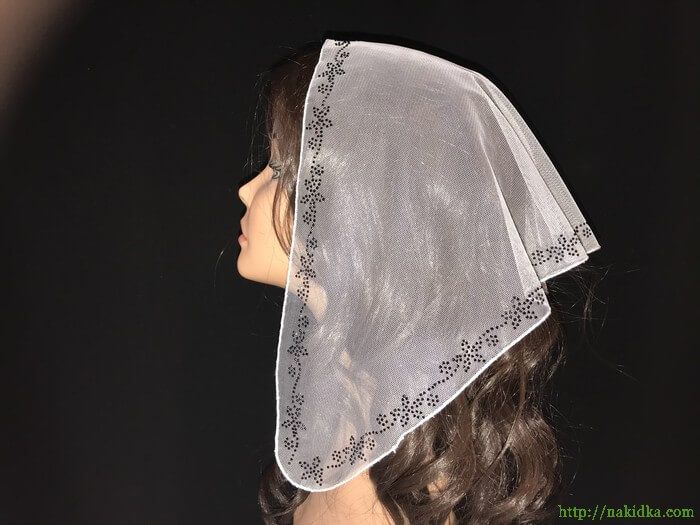 | Светло-серая легкая фатиновая накидка с наклееным черным узором по краю |