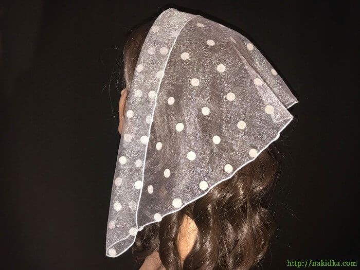 | Серая легкая фатиновая накидка с крупными белыми горошками |