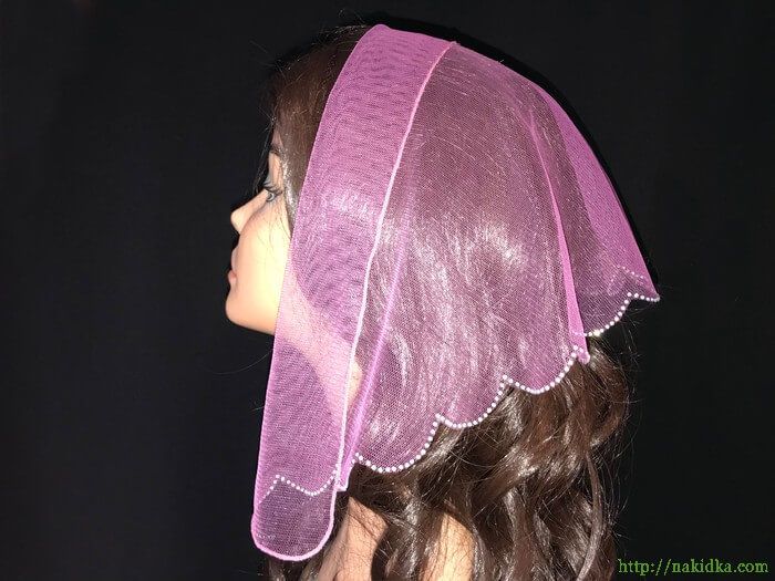 | Темно-розовая легкая фатиновая накидка с наклееным по вырезанному краю блестящим узором |