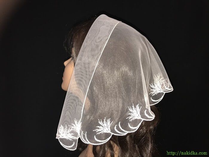 | Легкая фатиновая накидка цвета пудры с белым вышитым узором |