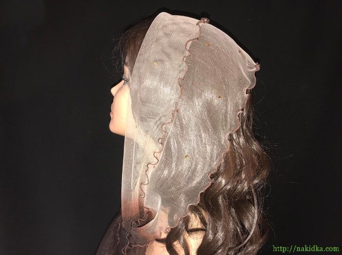 | Кофейный с коричневым легкий фатиновый шарф с наклееными золотистыми камушками |