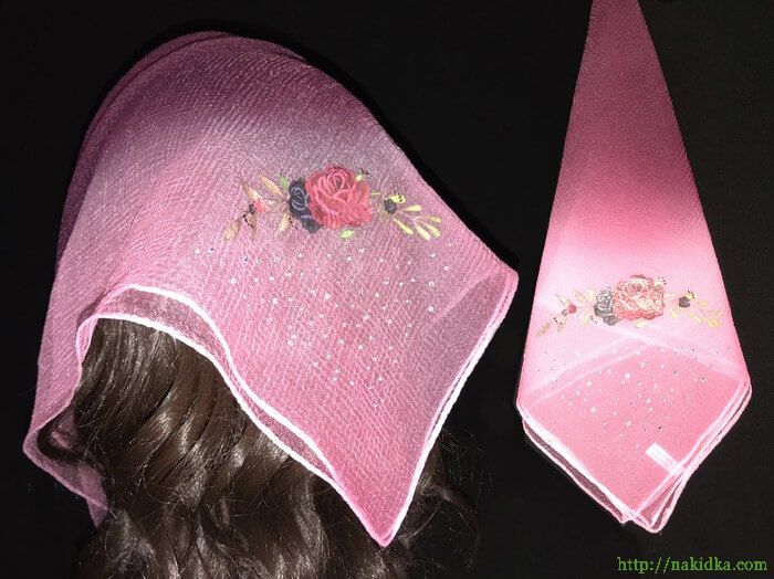 | Бордовая с розовым двутонная нейлоновая косынка с наклееным виниловым узором и блестящими камушками |