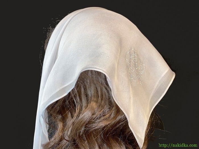 | Светло-серая шелковая косынка с наклееным перламутровым узором, розочкой |