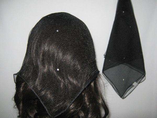 | Черная нейлоновая косынка с наклееными блестящими камушками |