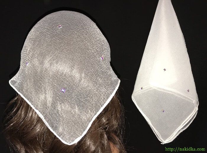 | Белая нейлоновая косынка с наклееным блестящими камушками ромбиками |