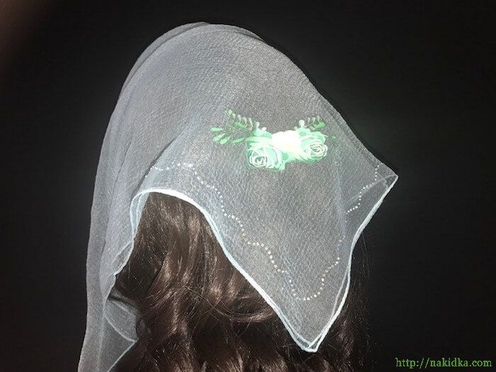 | Светло-мятная однотонная нейлоновая косынка с наклееным виниловым узором и узором с блестящими камушками |