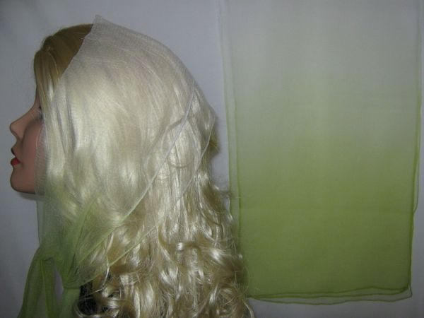 : Широкий утененный бело-салатовый нейлоновый шарф