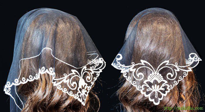 | Черная легкая фатиновая косынка с белым вышитым узором |