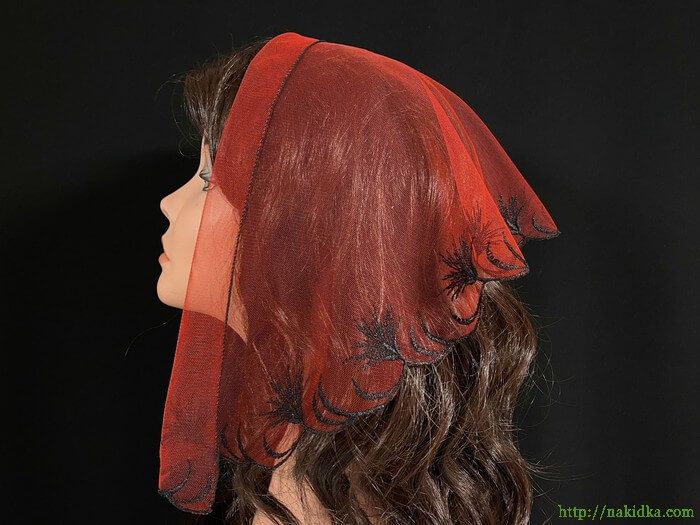 | Красная легкая фатиновая накидка с черным вышитым узором |
