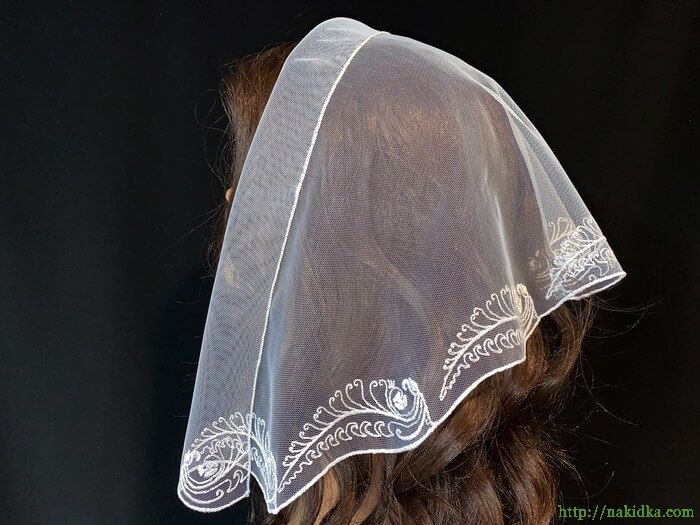 | Белая легкая фатиновая накидка с белым вышитым узором |