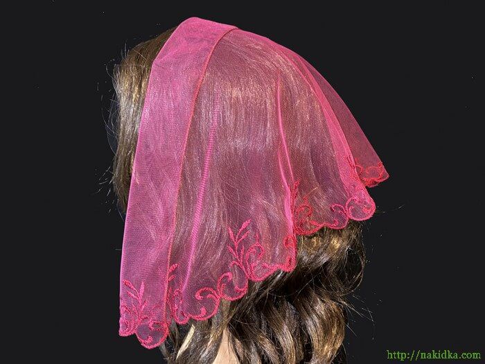 | Бордово-малиновая легкая фатиновая накидка с бордовым вышитым узором |