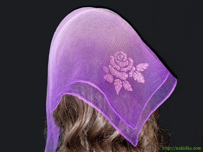 | Светло-фиолетовая с фиолетовым двутонная нейлоновая косынка с наклеенными фиолетовым блестящим узором |