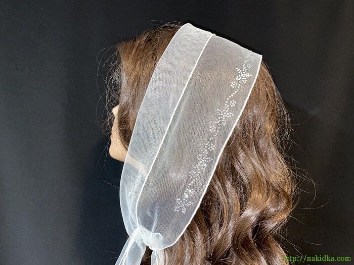 | Детский белый фатиновый шарф с блестящим наклееным узором |