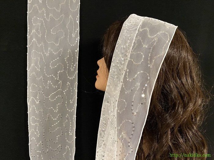 | Детский белый фатиновый шарф с нашитыми серебристыи блестками |
