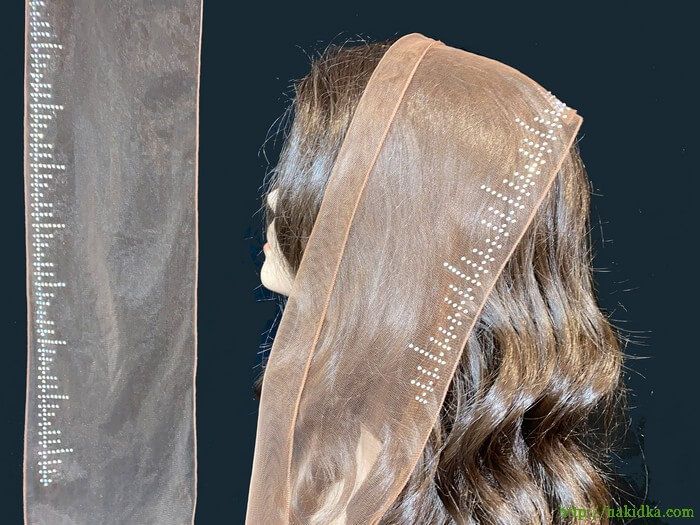| Детский светло-коричневый фатиновый шарф с наклееным блестящим узором |