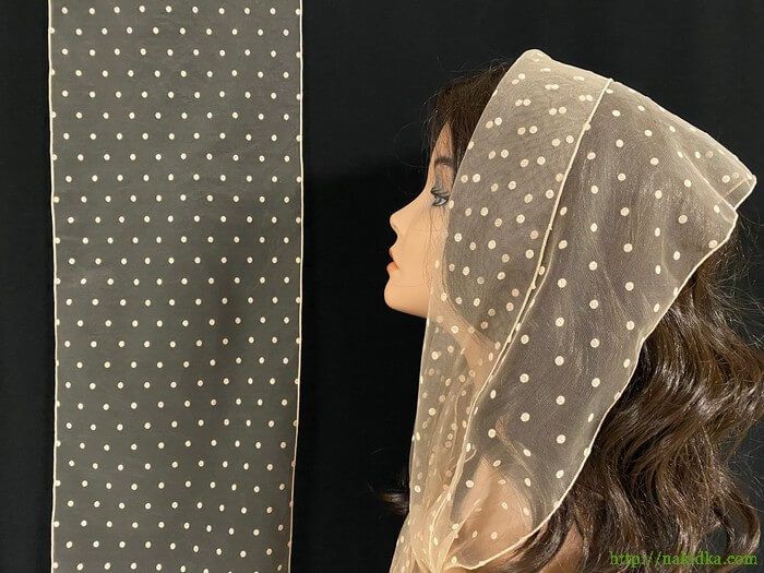 : Светло-кофейный фатиновый шарф в кофейный горошек