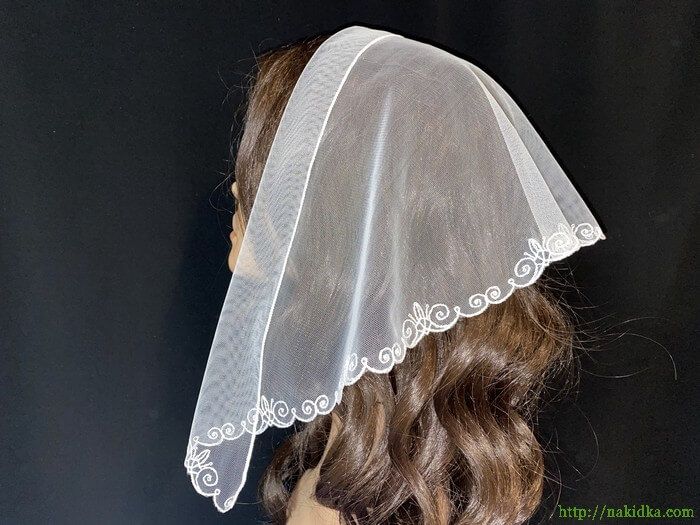 | Белая легкая фатиновая накидка с белым вышитым узором |