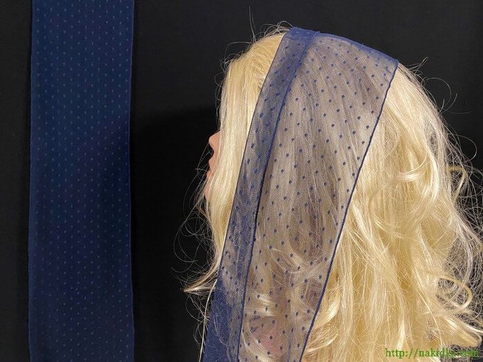 | Детский синий фатиновый шарф в синий горошек |