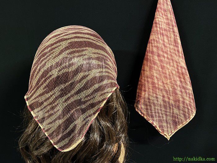 Тигристая бежевая с коричневым нейлоновая косынка