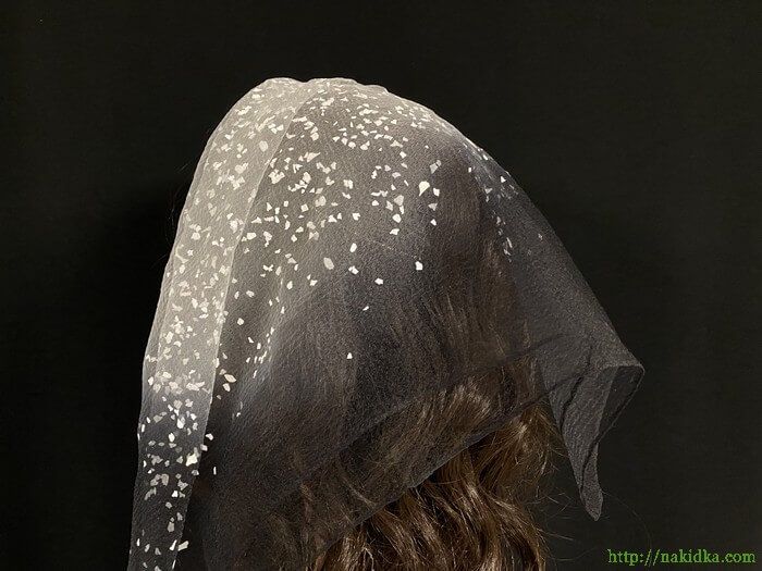 | Белая с черным нейлоновая косынка с белой флоковой россыпью |