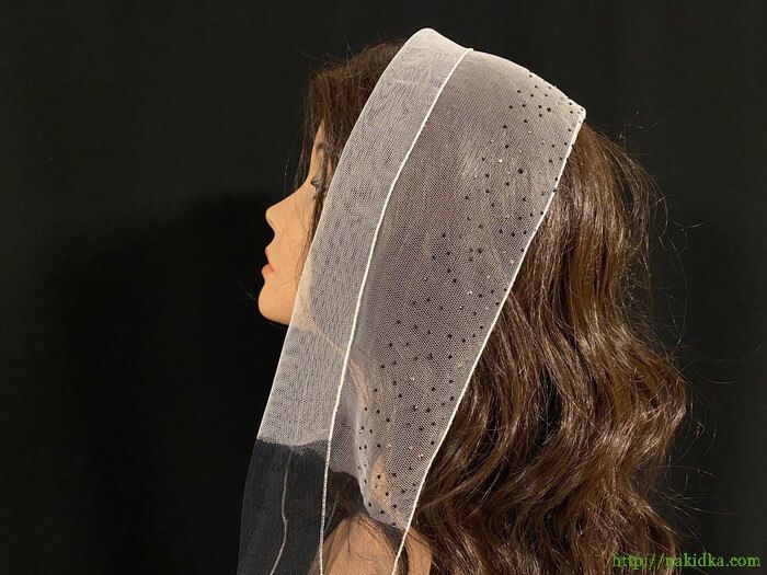 | Детский черный с белым легкий фатиновый шарф с наклееными черно-серыми камушками |