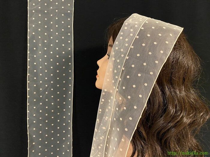 | Детский розово-бежевый фатионвый шарф в бежевый горошек |