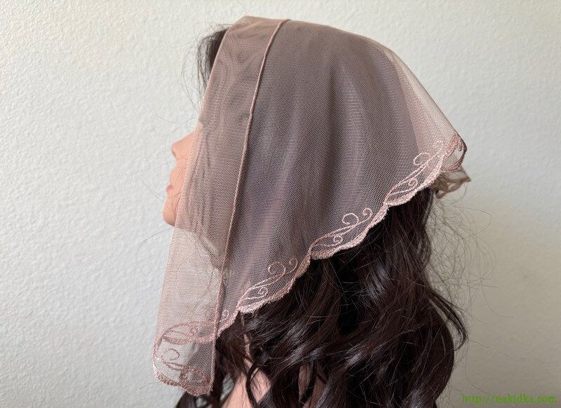Светло-кофейная фатиновая накидка с вышитым узором
