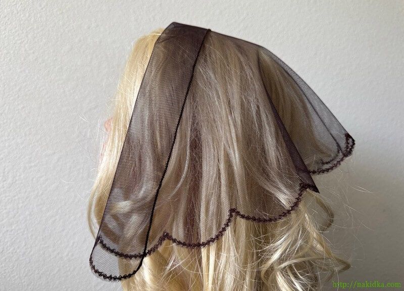 | Темно-коричневая фатиновая накидка с коричневым вышитым узором |