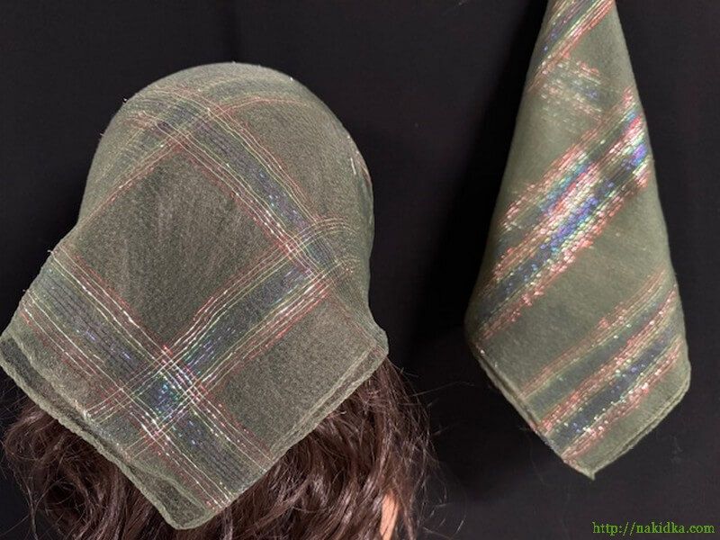 | Светло-серо-оливковая однотонная нейлоновая косынка с радужной люрексовой полоской |