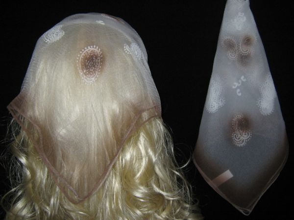 | Утененная белая с коричневыми краями и рисунком нейлоновая косынка |