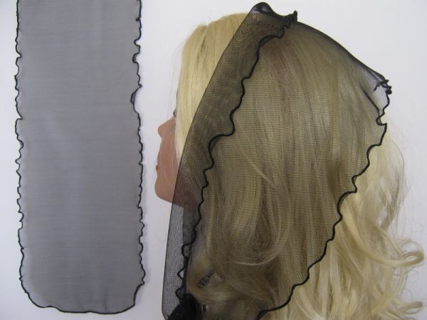 | Черный однотонный фатиновый шарф с черным волнистым ободком |