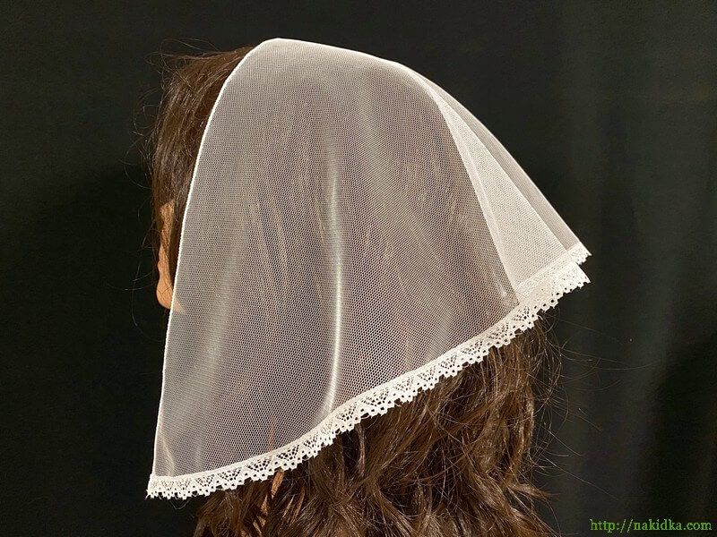 | Белая фатиновая накидка с кружевом на задней кромке |