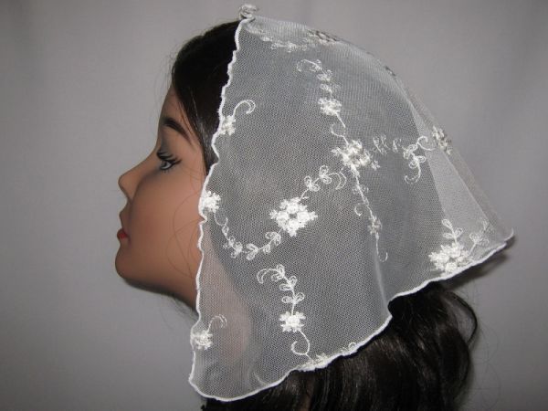| Белая фатиновая накидка с вышитым узором и белым волнистым ободком |