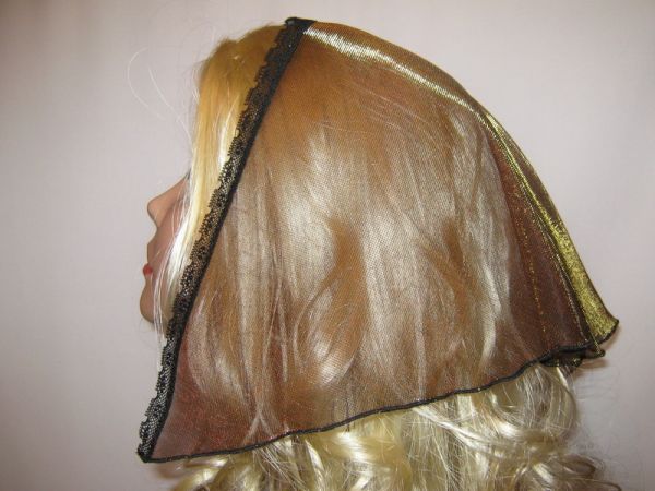 | Золотисто-коричневая накидка с отливом и черной кружевной передней кромкой |
