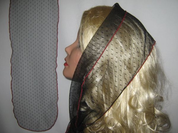 : Черный фатиновый шарф с узором и красным ободком