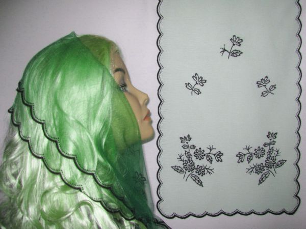| Зеленый однотонный нейлоновый шарф с рисунком и черным ободком |