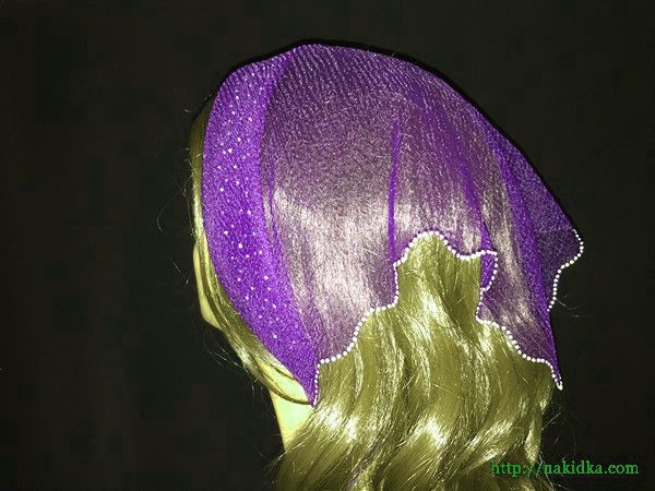 | Фиолетовая однотонная косынка с блестящими узорами на подвернутом крае и на волнистом ободке |