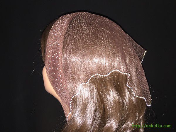 | Темно-коричневая однотонная косынка с блестящими узорами на подвернутом крае и на волнистом ободке |