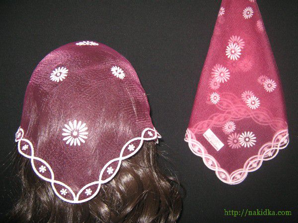 | Красная нейлоновая косынка с белым рисунком и белым ободком |